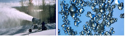 Last, but not least, is artificial snow, found at the ski fields. This type of snow is made of frozen water droplets, with none of the elaborate structure found in real snow crystals.