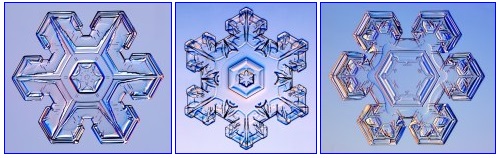 And the prettiest of all is a 12-sided snowflake. These crystals are quite rare, but sometimes a snowfall will bring quite a few.